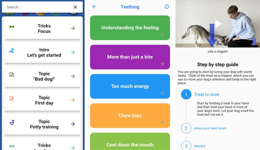 Basic Obedience Training: The App offers a range of basic obedience training modules, guiding users through commands such as sit, stay, come, and leash walking. These step-by-step tutorials are designed to be easy to follow and implement.